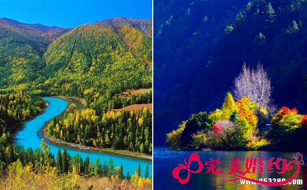 金秋佳节时期,一片秋色,蜜月如果在此时段,九寨、北疆都是最美的时候。九寨珍珠滩的气势磅礴与五花海的五彩斑斓都是是梦幻景观,在此度蜜月定能将甜蜜定格在记忆中永不消逝。此外,北疆的金秋也是不容错过的,峰恋叠嶂,森林密布,古木参天,湖泊划上了一道优美的弧线,充满神秘魅力。