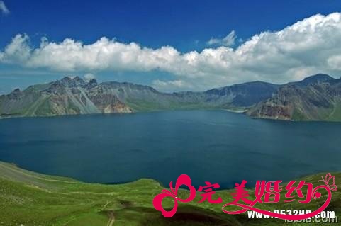 长白山天池旅游,它平静的湖水犹如在山顶镶嵌了一块蓝宝石一般,当它毫无保...