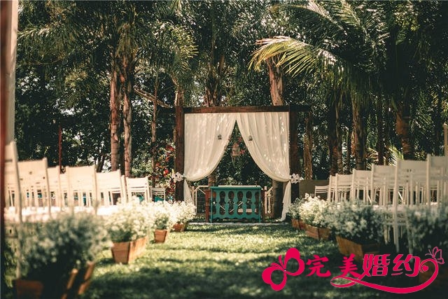 草坪是户外婚礼主流形式之一,它通常选择在公园、高尔夫或酒店里。主要的费用是场地,其次才到布置费。在具体策划时有两种方式,一是婚庆公司全包,自己提需求即可,价格也较为昂贵;二是半包方式,自己筹备东西,婚庆公司给予布置。