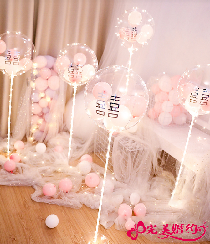在波波球下面放一个支撑杆,直接怼地上。高低可以控制,间距可以控制,搭配网纱、灯串非常好看~