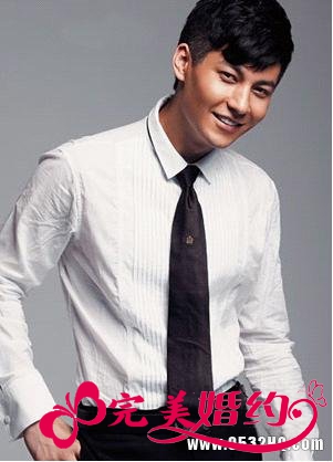 黑色丝缎领带是T台上最常见的帅哥造型,不管新郎原来骨子里是嬉皮还是朋克,或是文艺青年,最保守也是最见效的、化身可靠“老公”的方式就是选择一条没有复杂花纹,质感上乘的黑色领带。如果新郎想看起来更成熟稳重又有信任感,那就选用宽版领带。