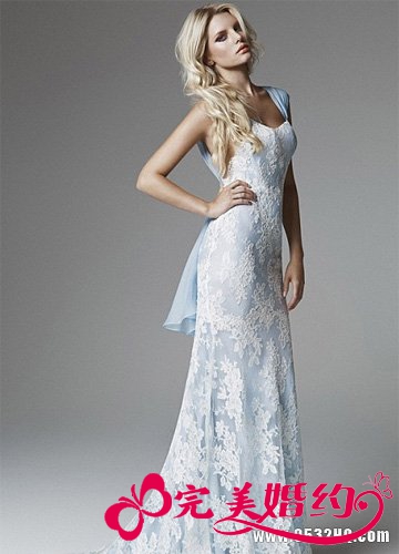 婚纱礼服 并不一定都要白色才能显出洁白无瑕,选择蓝色作为婚纱礼服的颜色...