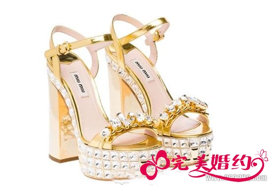 高贵典雅的金色婚鞋 令新娘足下生辉