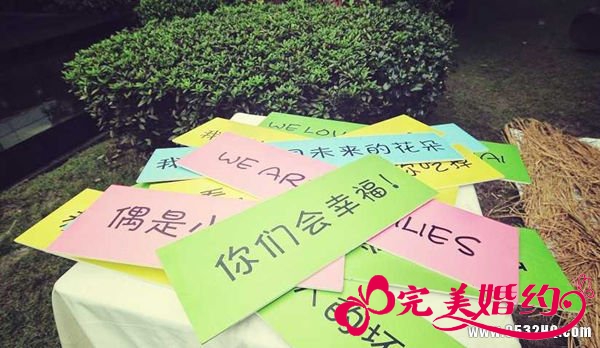 在婚宴上准备一个小本子,里面备好纸和笔,让宾客们写下自己对新人的婚姻和家庭建议,婚礼结束后把它们贴在一个本子里,作为你们婚后生活的参考。