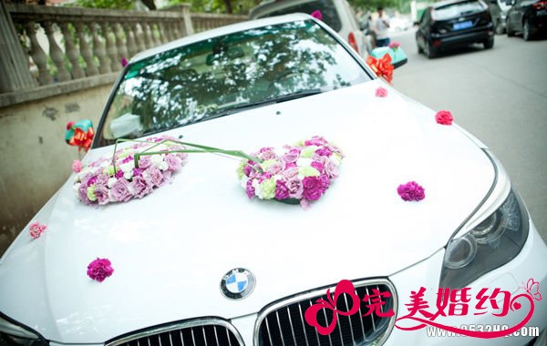 车尾装饰的灵活性就比较大了,想用鲜花也可以,想跟车头装饰相呼应也可以。花朵的选择有百合、红掌、天堂鸟等寓意较好的花朵。用玩偶也可以跟车头首尾呼应,厦门婚纱小编还有个建议,可以尝试下垂的瀑布造型,车开动的时候在后面随风飞扬也很酷。或者在车后面放个大大的爱心,也十分拉风哦!