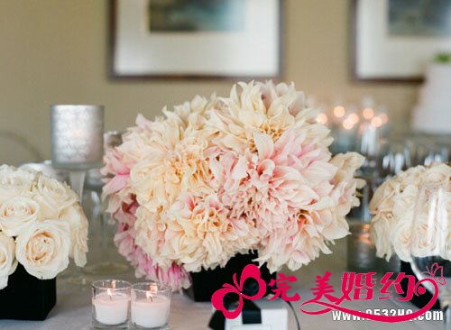 婚礼上最常见的辅助灯光是烛杯+漂蜡的组合,各式精美造型的小烛杯中散发星星点点的烛光,零散点缀起到增亮局部的作用,成片运用蔚为壮观煞有气势,浪漫十足。值得新人注意的是,点燃婚蜡之前,最好在烛杯里加入适量的水,蜡烛漂浮于水面上,既有摇曳的动感,也便于蜡油的清理。漂蜡的质量决定了持续燃烧的时间,香味的挑选也很重要,新人们在选择婚礼蜡烛时要仔细哦。
