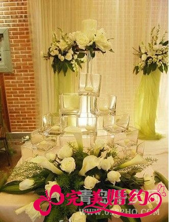 酒店在签到台附近可以按照新人的需要设置餐前吧,提供简单的酒水和甜点,客人在婚礼开始前的等待时间里可以随意享用,也可以因此结识不太熟识的宾客,从而融合婚礼的气氛。