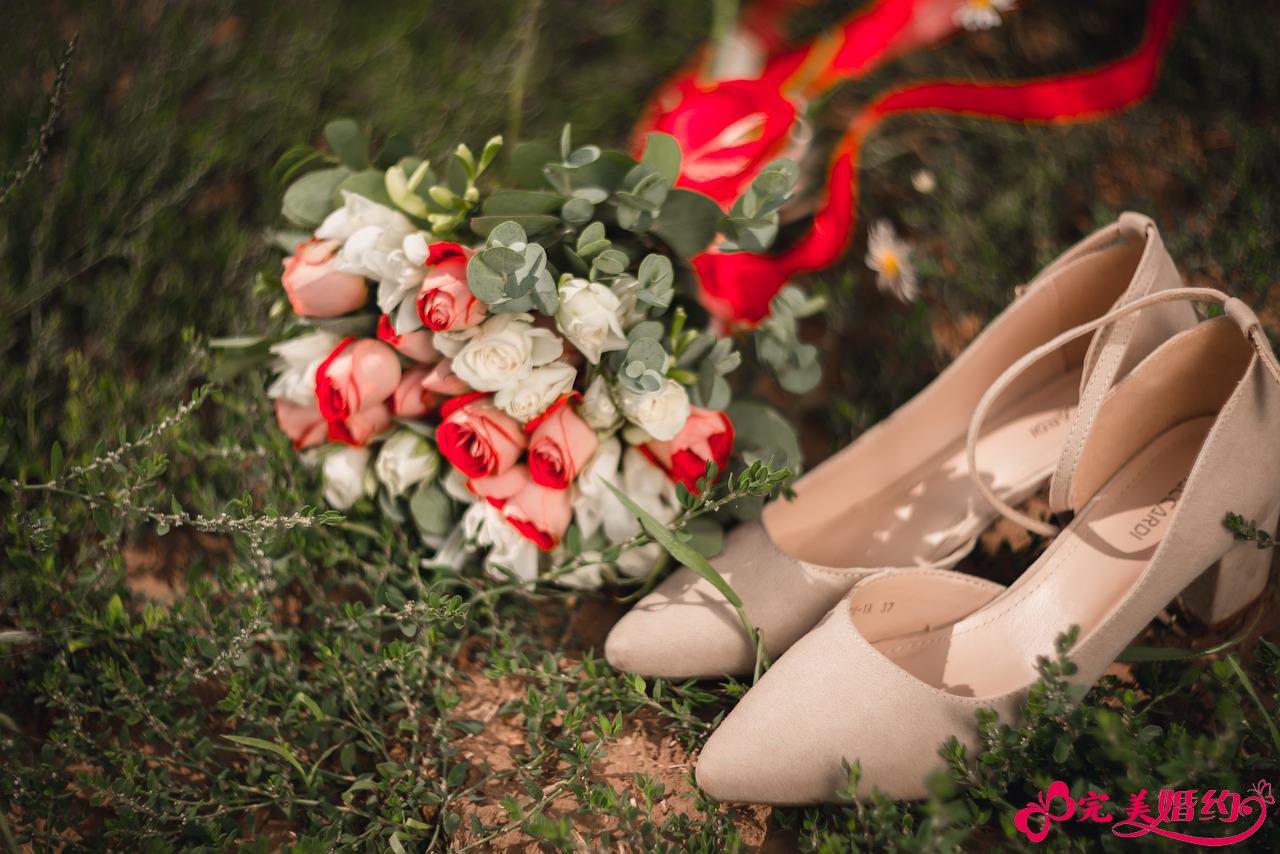 亮金色:金色代表着高贵和华丽,亮金色的鞋子能为整体造型增添闪耀的亮点,使喜妈妈在婚礼上更加出众。在灯光的照耀下,亮金色会反射出迷人的光泽,让喜妈妈显得光彩照人,尤其适合在有较多灯光布置的室内婚礼或西式婚礼中穿着。