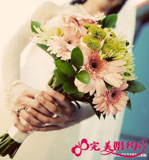 花束的选择要根据婚袍的色彩、样式和正式程度以及新娘高度和胖瘦来决定。传...