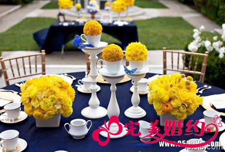 明黄与靛蓝打造的撞色婚礼布置图片