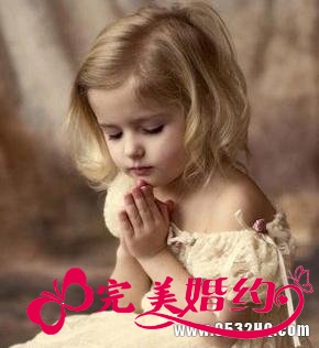 如果你渴望的是一个简单纯净的婚礼,那么孩子纯真的本性恰巧能与婚礼完美的融合。这时候,小伴娘们不需要过于花哨的打扮,一身纯色的蕾丝裙,一头柔软蓬松的小短发,别个小发卡,不再需要其他的修饰,就能将小花童天真的笑颜展现出来。图中造型简单纯粹的小花童,虔诚祈祷的神态,活脱脱就是一个不染凡尘的天使。