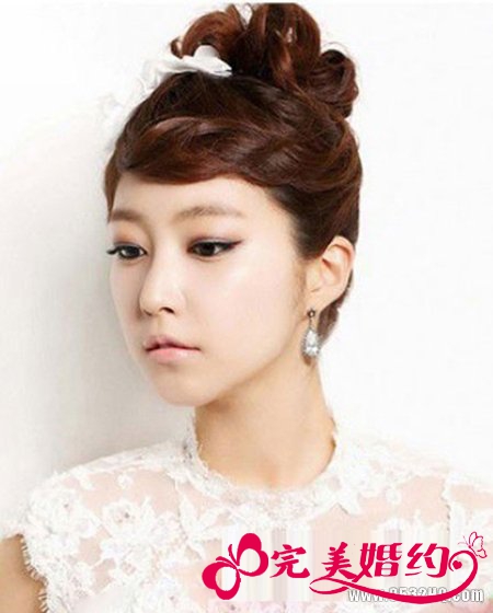 具有青春活力气息的花苞头是很多女生的最爱,蓬松的花苞头更可以提升女生甜美的气息,加上可爱底部留出的卷发,脸显的很小。在春季这个升级盎然的季节,如果新娘想在自己的婚礼中有些新意,不妨来一个花苞头新娘发型吧。