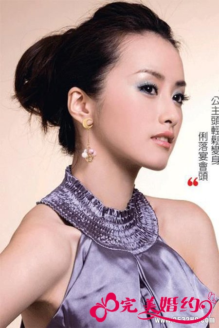 甜美新娘盘发打造起来十分简单,只需要将后面的头发卷起,然后用卡子固定住就可以了,可以留出一部分头发让它自然散在脖子处。可以搭配漂亮发饰,那就可以完成这个简单实用的公主头。