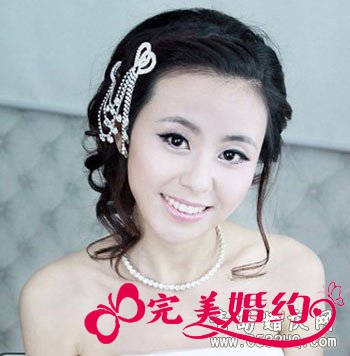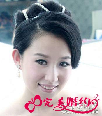 利用珍珠链子打造的新娘盘发,既贵气又显浪漫。