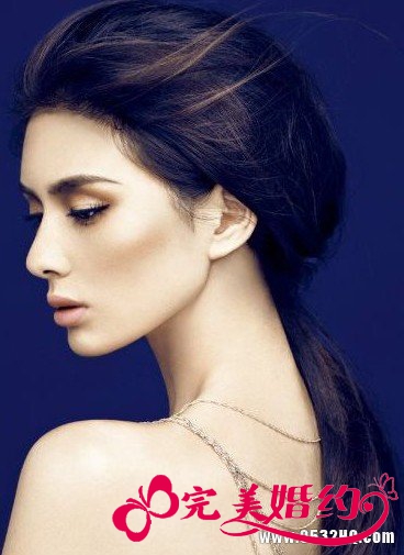 很多新娘都不敢扎马尾,怕将扁平头显现出来,缺乏美感,今天小编教你一个方法,帮助你打造时髦的马尾造型。在后脑勺制造一定的空气感,可以让整个发型变得更加圆润饱满,而且又显得很时髦。将刘海梳起来,用喷雾打造出立体飞扬的感觉,看起来很有女神范。