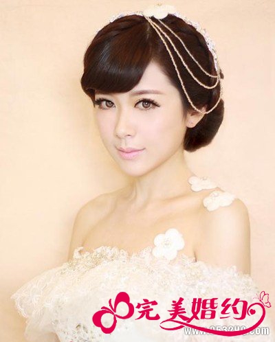 在拍婚纱照时新娘的发型不但要与所选择的婚纱礼服相配,还要根据自己的脸型...