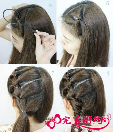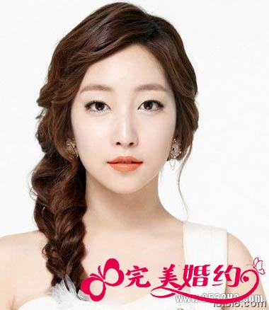 鱼骨辫盘发打造韩式新娘发型图解