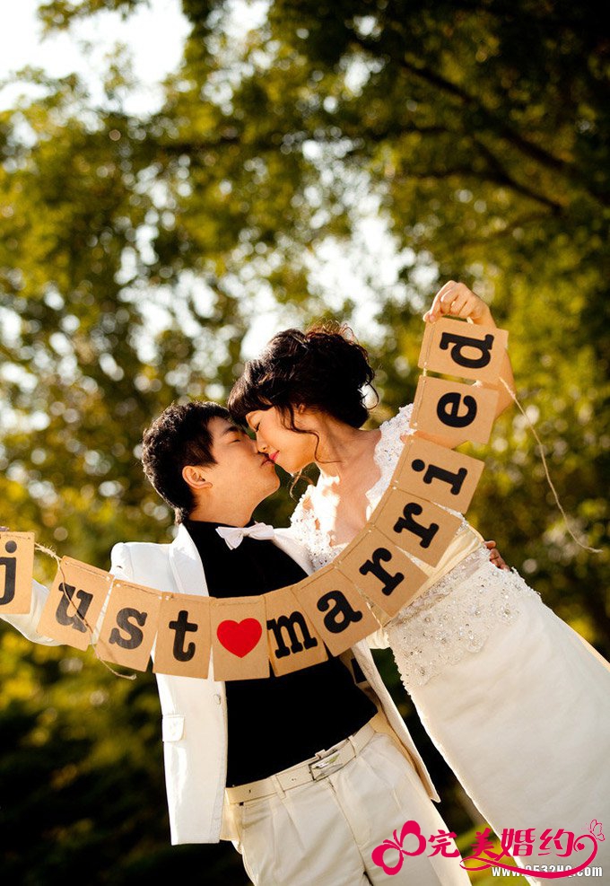 “Just married”我们结婚了!对于刚刚步入婚姻殿堂的新人来说,对于未来的一切都充满了美好的憧憬,所以也可以把这句话看成是未来幸福又甜蜜生活的一种开端,所以这样的爱情表白像是一种宣言,同时也仿佛爱人间彼此表白了:我放心的把自己交给你了。