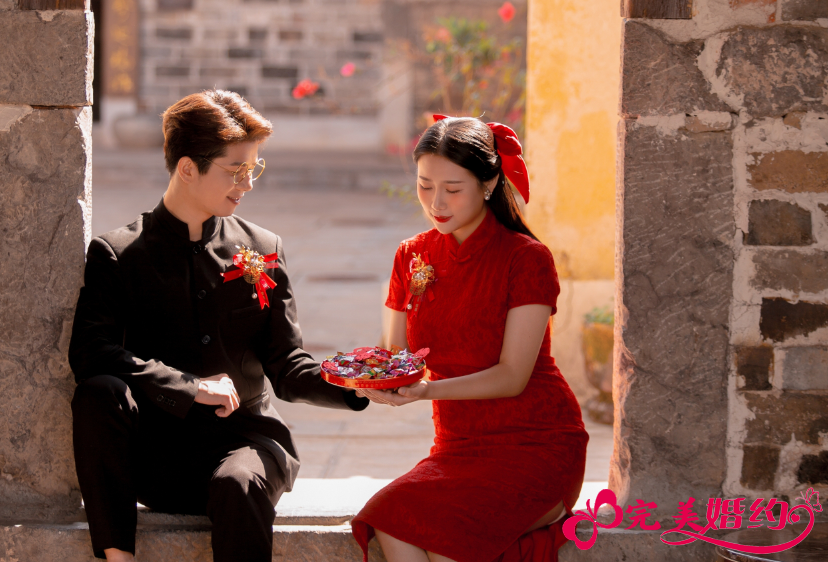 经典黑白红的撞色搭配,喜庆中又带有轻复古的文艺,极简的格调烘托出更为细腻的情感,俏皮又甜蜜的互动,是恰到好处的高级感。