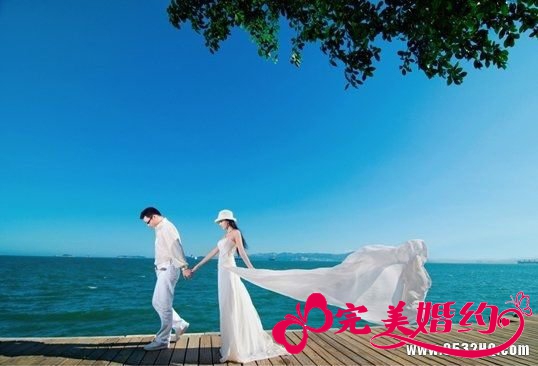 在外景婚纱照流行的今天,海景婚纱照受到了很多新人的青睐和追捧。碧蓝的大...