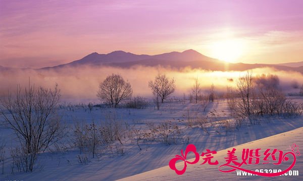 雪景的美丽充当了婚纱照的自然背景,玉树琼枝的自然美景也为婚纱照注入了独...