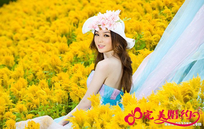 金色花海之中的婚纱客照欣赏