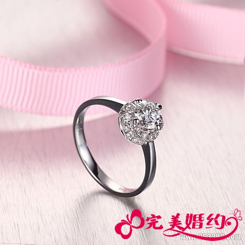 华丽的钻石周围有很多碎钻围绕,这一流行款式绝对是目前新娘和设计师最青睐的款式,这些闪耀的小碎钻使得婚戒看起来更大,而且他们也衬托中心的大钻石更加具有奢华感,新娘怎么能抗拒这一诱惑呢?