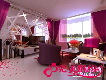 新人的卧室将在这两个主题色间徘徊。火红激情与金色刺绣、印花图案的结合强调激进韵味而不流俗,红色与白色是东方和西方婚礼的专属颜色。为了营造喜庆、热烈的氛围。素雅的花色和织锦锻、丝棉等华贵材质的结合打造出低调的华贵感。作为最能体现幸福的色彩, 2009 年婚庆产品流行的主色调还有蓝色和浅紫色。如果设计师选用这两种色调,一定要记住远离蓝宝石色和灰色,因为它会增添空间的粗糙感,而蓝色与浅紫色的搭配会营造出了无生气的氛围。