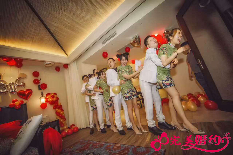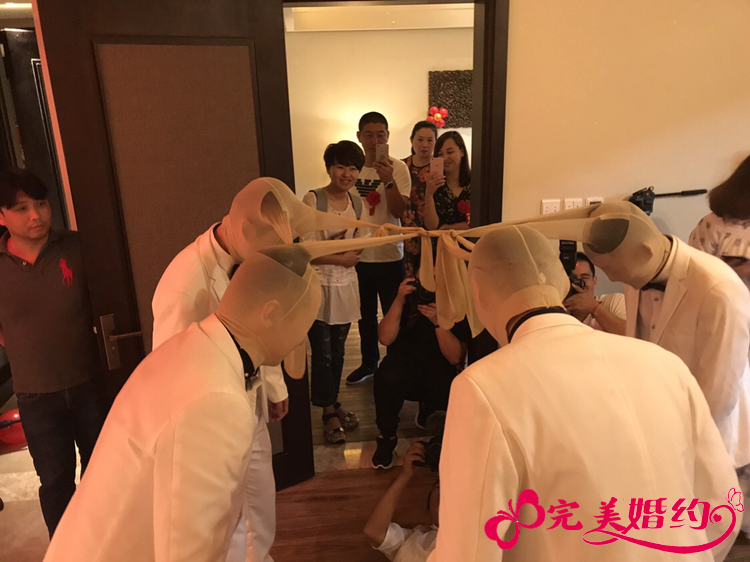 5.蒙新郎眼睛给兄弟团画口红,每人画花即成功